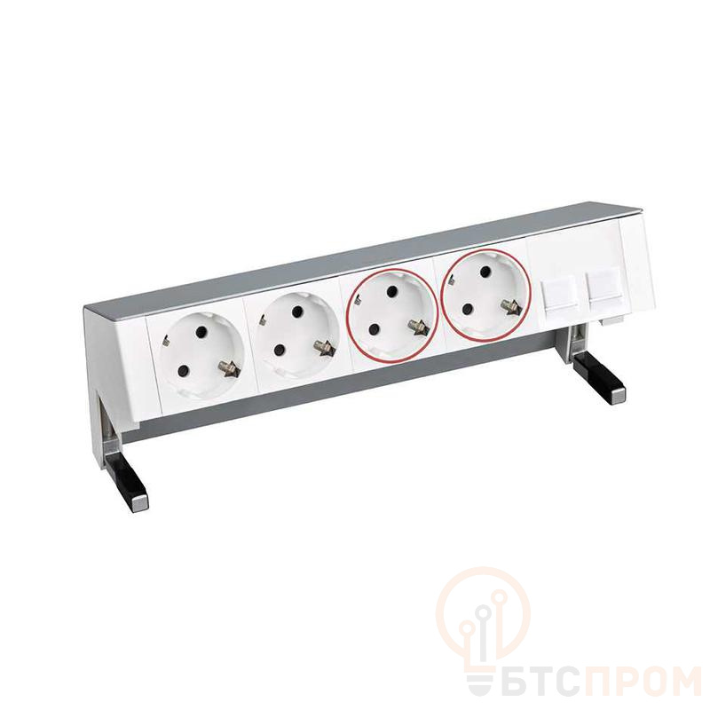Блок розеточный настольный Simon 400 2х2P+E 2х2P+E UPS адаптер для 2хRJ45 моноблок алюм. Simon 42502220-133