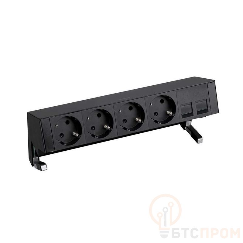 –Блок розеточный настольный Simon 400 4х2P+E адаптер для 2хRJ45 моноблок черн. Simon 42504020-138