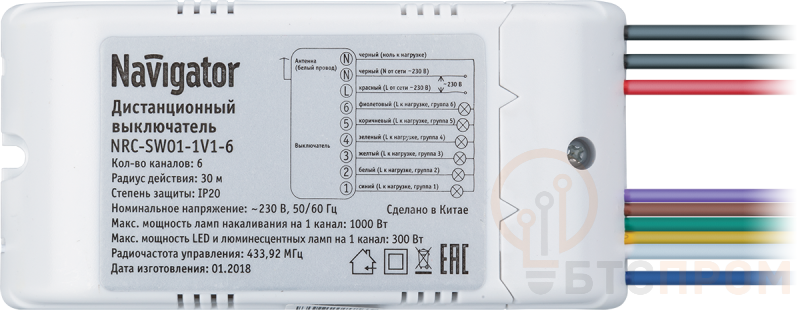 Выключатель 61 761 NRC-SW01-1V1-6 с пультом 6 каналов 6х1000Вт Navigator 61761 фото в каталоге от BTSprom.by