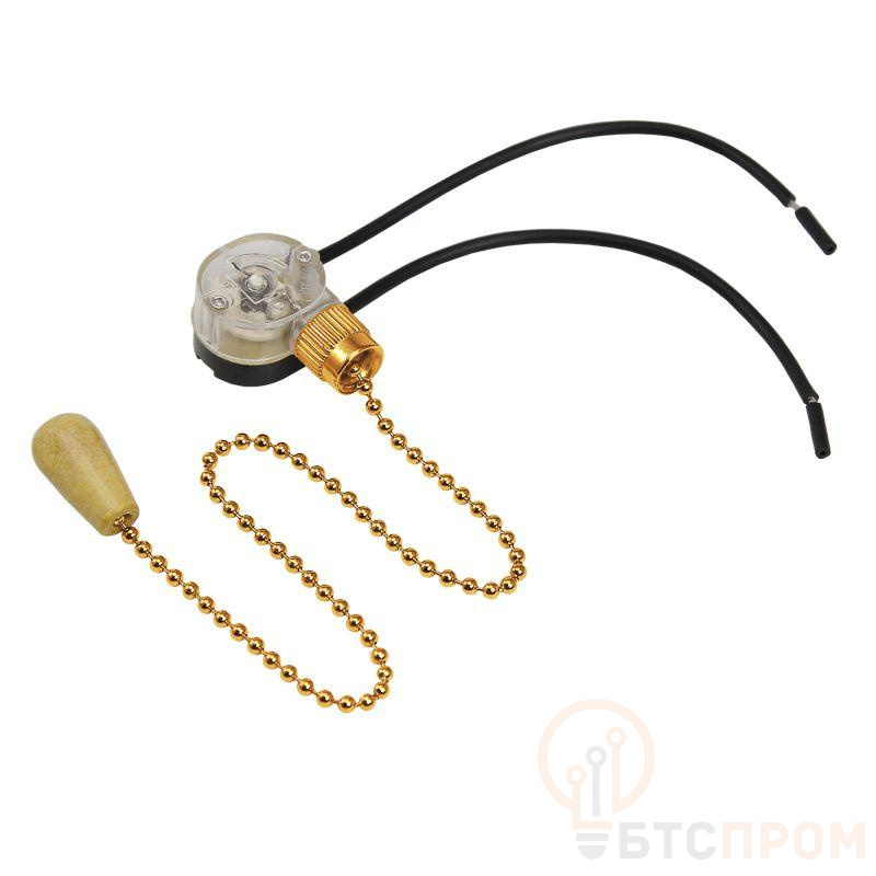 Выключатель для настенного светильника c проводом и деревянным наконечником "Gold" (инд. упак.) Rexant 32-0104-1