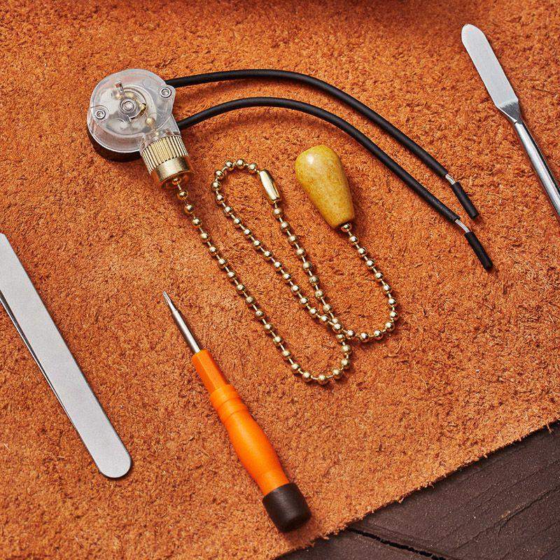 Выключатель для настенного светильника предназначен для замены вышедшего из строя выключателя на осветительном приборе. Используется для удобного управления освещением. Хромированная цепочка устойчива к коррозии и сохраняет эстетичный вид долгое время, а длина 27 см обеспечивает удобный доступ к светильникам, которые расположены высоко. Деревянный наконечник позволяет быстрее найти выключатель, что особенно упрощает его использование в темноте. К выключателю уже присоединены провода, что упрощает процесс установки. Предназначен для использования только в жилых помещениях.