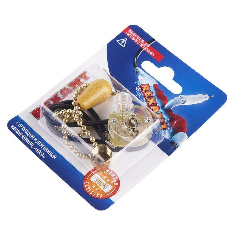 Выключатель для настенного светильника с проводом и деревянным наконечником gold блист. Rexant 06-0243-A