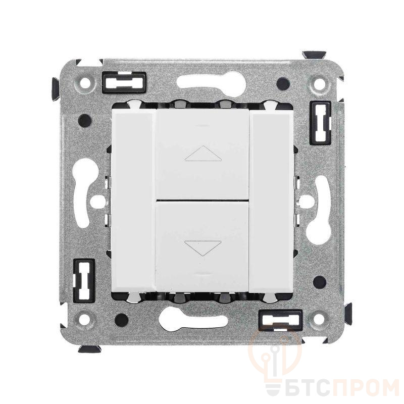 Механизм управления рольставнями. Назначение: предназначеа для управления приводом рольставней и штор. Характеристики: номинальное напряжение – 230 В; диаметр отверстий для ввода кабелей – 3 мм; винтовые зажимы; шаблон для зачистки кабеля – 11 мм. Механизм устанавливается в подрозеточные коробки глубиной не менее 45 мм (код 59301) при помощи каркаса с лапками (код 4400802) и саморезов. Цвет: "Белое облако". Производитель оставляет за собой право вносить во внешний вид изделия изменения, которые не влияют на его функционал, безопасность и надежность.