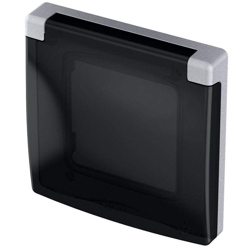 Рамка с защитной крышкой IP44 IK07 Inspiria для скрытого монтажа, степень пылевлагозащиты IP44, степень ударопрочности IK07, цвет "Алюминий", предназначена для совместной установки с механизмами Inspiria в помещениях с повышенной влажностью. С помощью рамки обеспечивается дополнительная защита любой функции Inspiria от влаги, пыли и нежелательных механических воздействий.
