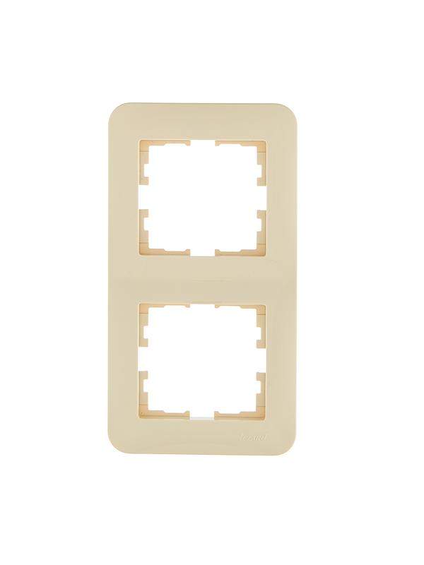 Изделие изготовлено из высококачественного прочного пластика, обеспечивающего долговечность и устойчивость к механическим воздействиям. Вертикальная компоновка рамки оптимальна для установки двух розеток или комбинации розетки и выключателя, позволяя рационально использовать пространство на стене.