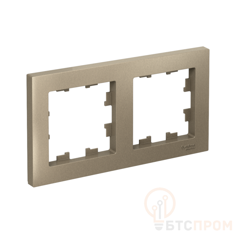 Рамка Systeme Electric (ранее Schneider Electric) серии AtlasDesign в цвете шампань двухместная. - Устанавливается в вертикальном и горизонтальном положениях. - Лицевые детали из качественного ABS-пластика, устойчивого к царапинам и УФ-излучению. - Позволяет гармонично вписать электроустановочное изделие в интерьер помещения.
