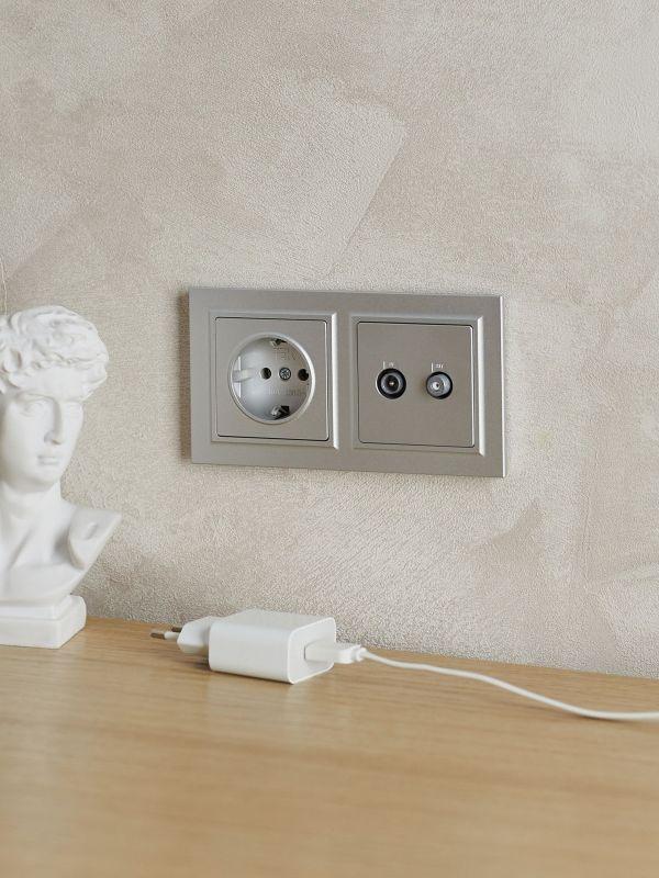 розетка компьютерная + телевизионная 2-м brite ртв/рк12-бра rj45 кат.5e + tv механизм алюм. iek br-ak20-1-k47 от BTSprom.by