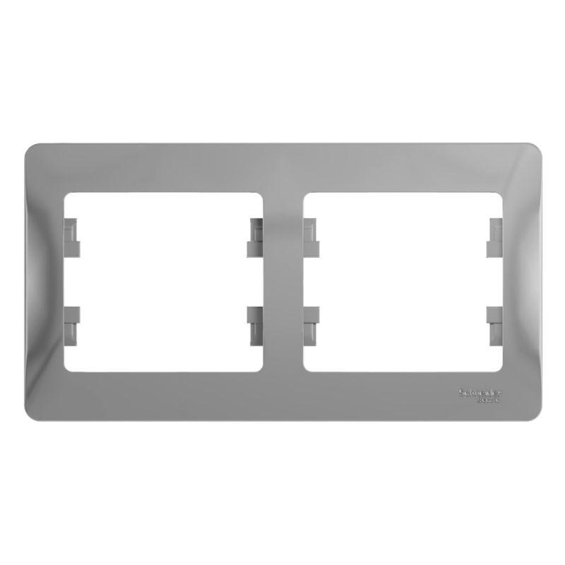 Рамка Systeme Electric (ранее Schneider Electric) серии Glossa (цвет алюминий) двухместная. - Устанавливается в вертикальном положении. - Выполнена из материала PС+ASA, стойкого к УФ-излучению и появлению царапин. - Позволяет гармонично вписать электроустановочное изделие в интерьер помещения.