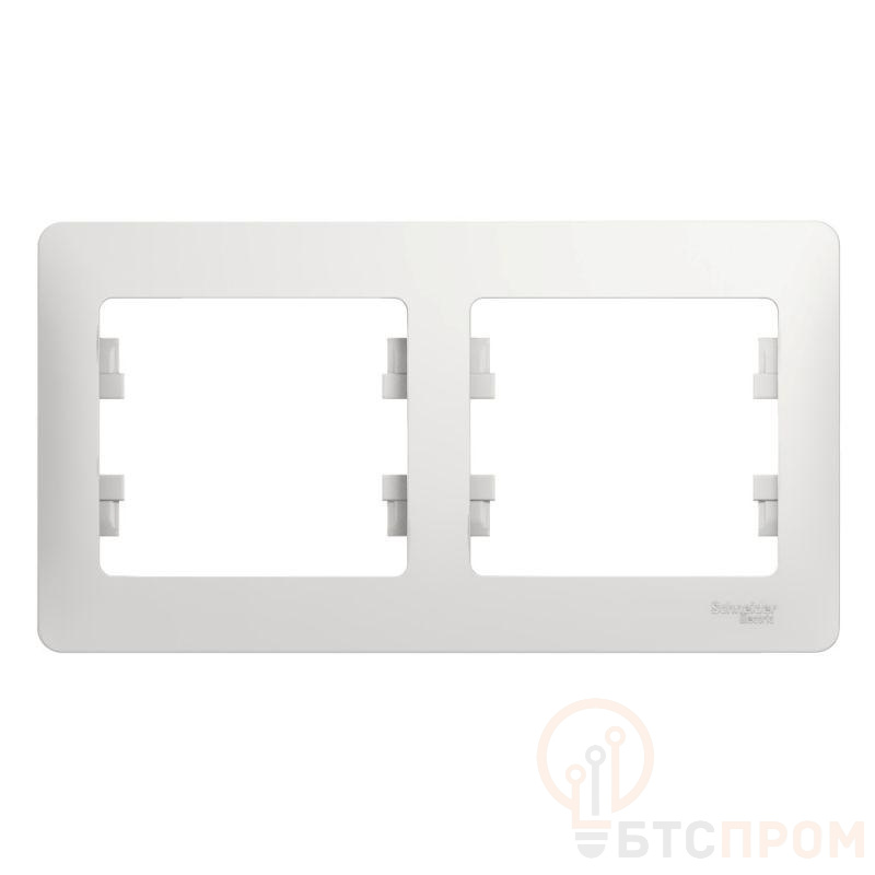 Рамка Systeme Electric (ранее Schneider Electric) серии Glossa (цвет белый) двухместная. - Устанавливается в горизонтальном положении. - Выполнена из материала PС+ASA, стойкого к УФ-излучению и появлению царапин. - Позволяет гармонично вписать электроустановочное изделие в интерьер помещения.