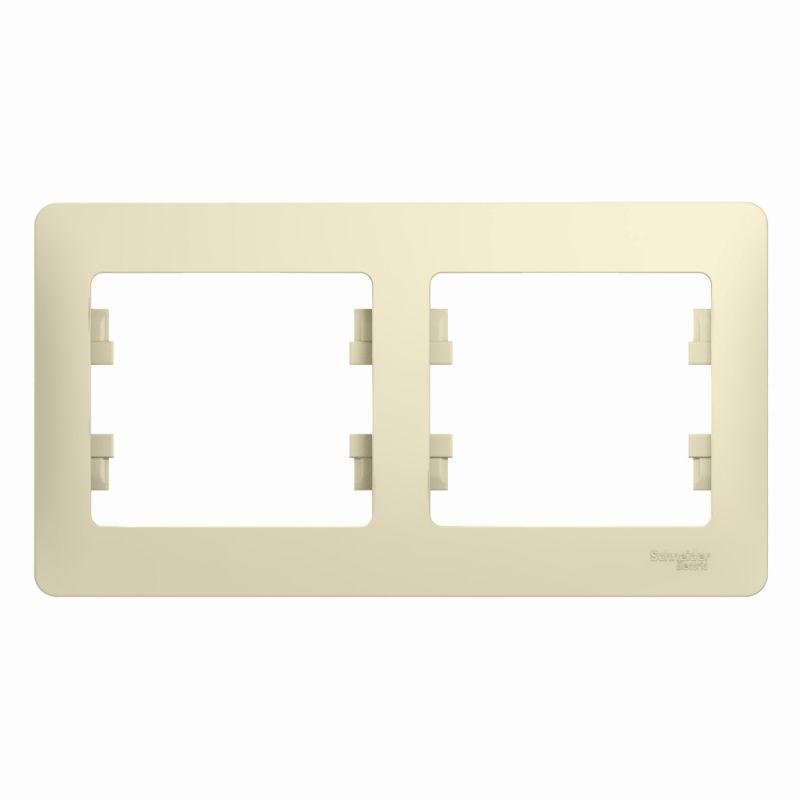 Рамка Systeme Electric (ранее Schneider Electric) серии Glossa (цвет бежевый) двухместная. - Устанавливается в горизонтальном положении. - Выполнена из материала PС+ASA, стойкого к УФ-излучению и появлению царапин. - Позволяет гармонично вписать электроустановочное изделие в интерьер помещения.