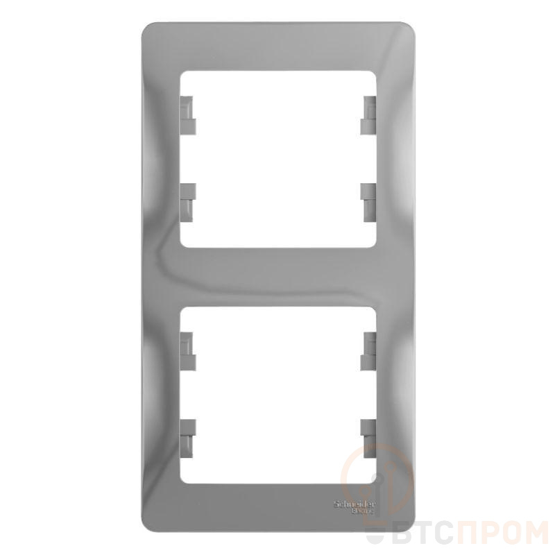 Рамка Systeme Electric (ранее Schneider Electric) серии Glossa (цвет алюминий) двухместная. - Устанавливается в вертикальном положении. - Выполнена из материала PС+ASA, стойкого к УФ-излучению и появлению царапин. - Позволяет гармонично вписать электроустановочное изделие в интерьер помещения.