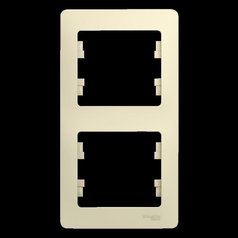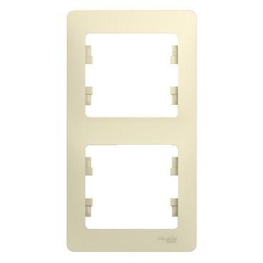 Рамка Systeme Electric (ранее Schneider Electric) серии Glossa (цвет бежевый) двухместная. - Устанавливается в вертикальном положении. - Выполнена из материала PС+ASA, стойкого к УФ-излучению и появлению царапин. - Позволяет гармонично вписать электроустановочное изделие в интерьер помещения.