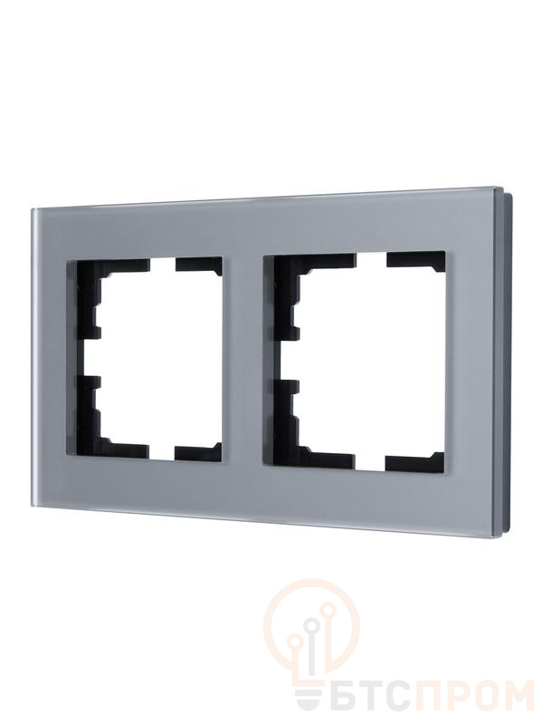 Ключевой особенностью данной рамки является использование прочного закаленного стекла, которое обеспечивает долговечность, устойчивость к механическим воздействиям и легкость в уходе. Конструкция предназначена для установки двух электрических механизмов (например, розеток или выключателей) стандартного европейского формата в один горизонтальный ряд.