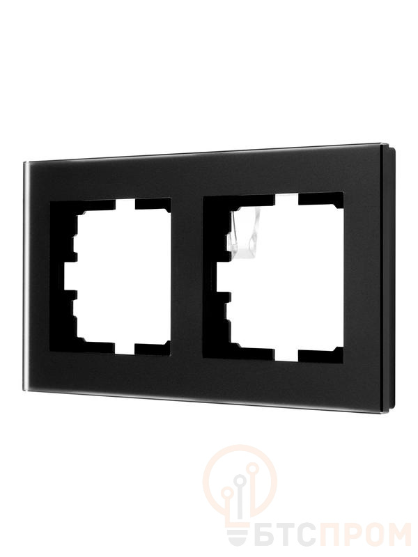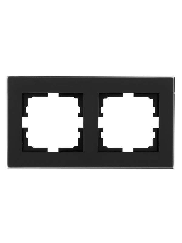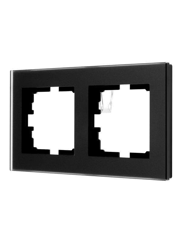 Ключевой особенностью данной рамки является использование прочного закаленного стекла, которое обеспечивает длительный срок службы и устойчивость к механическим воздействиям. Конструкция предназначена для одновременного монтажа двух электроустановочных изделий, таких как розетки или выключатели, объединяя их в эстетичную композицию.