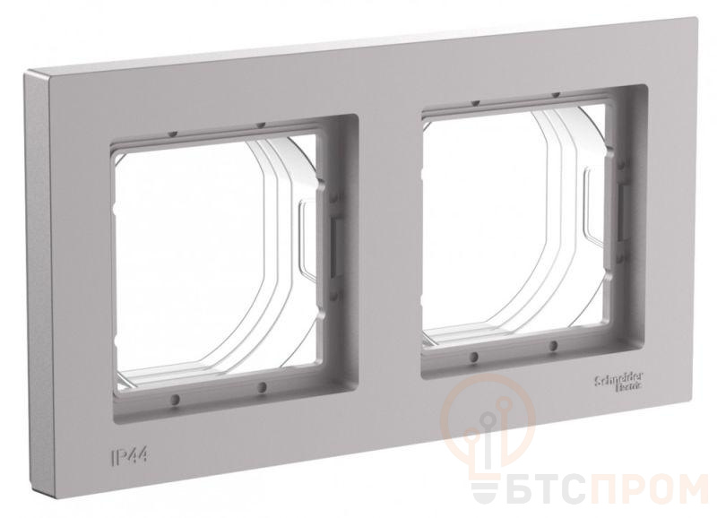 Рамка Systeme Electric (ранее Schneider Electric) серии AtlasDesign Aqua (цвет алюминий) двухместная. - Изделие со степенью защиты IP44 обеспечит безопасность использования в ванной и на кухне. - Позволяет гармонично вписать электроустановочное изделие в интерьер помещения. - Несмотря на внешнее сходство, конструкция рамок серии AtlasDesign Aqua отличается от конструкции рамок AtlasDesign. Механизмы и рамки со степенью защиты IP20 несовместимы с механизмами и рамками со степенью защиты IP44.