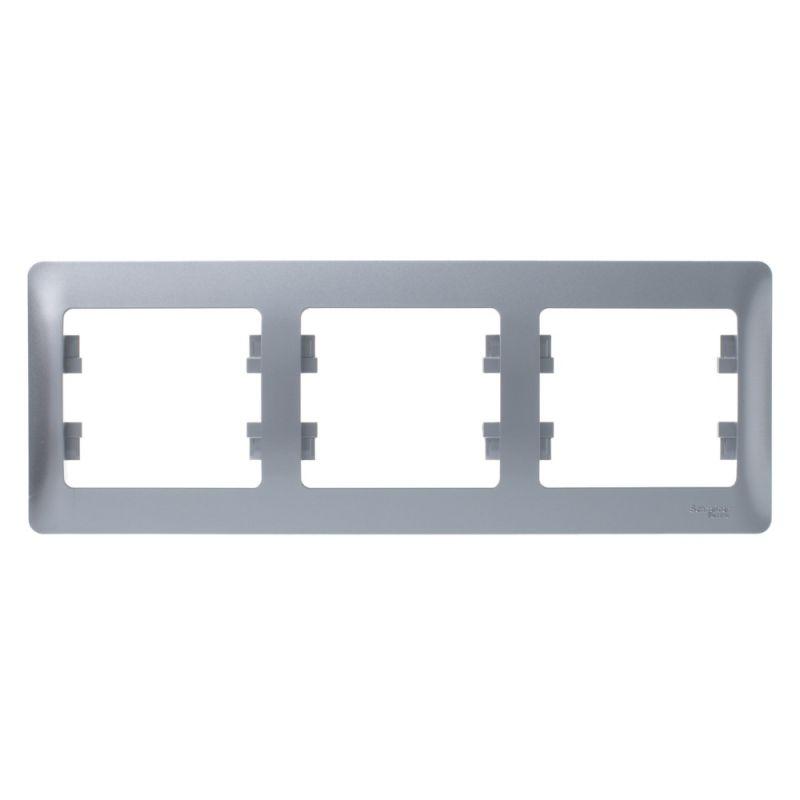 Рамка Systeme Electric (ранее Schneider Electric) серии Glossa (цвет алюминий) трёхместная. - Устанавливается в вертикальном положении. - Выполнена из материала PС+ASA, стойкого к УФ-излучению и появлению царапин. - Позволяет гармонично вписать электроустановочное изделие в интерьер помещения.