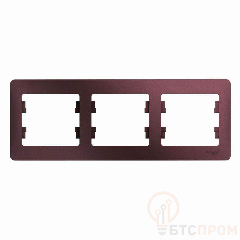 Рамка Systeme Electric (ранее Schneider Electric) серии Glossa (цвет баклажановый) трёхместная. - Устанавливается в горизонтальном положении. - Выполнена из материала PС+ASA, стойкого к УФ-излучению и появлению царапин. - Позволяет гармонично вписать электроустановочное изделие в интерьер помещения.