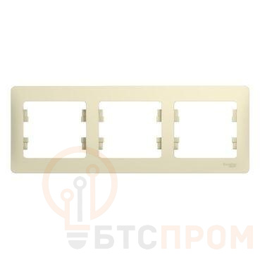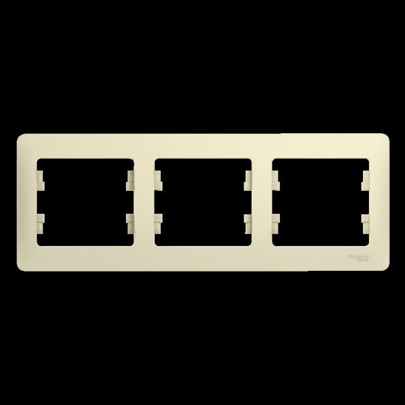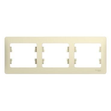 Рамка Systeme Electric (ранее Schneider Electric) серии Glossa (цвет бежевый) трёхместная. - Устанавливается в вертикальном положении. - Выполнена из материала PС+ASA, стойкого к УФ-излучению и появлению царапин. - Позволяет гармонично вписать электроустановочное изделие в интерьер помещения.