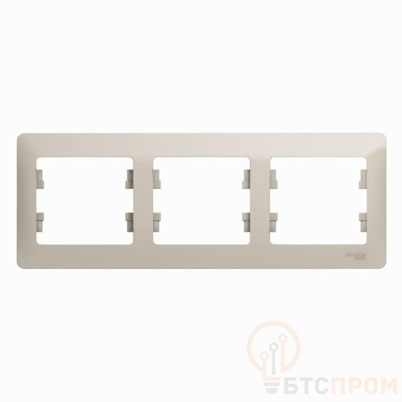 Рамка Systeme Electric (ранее Schneider Electric) серии Glossa (цвет молочный) трёхместная. - Устанавливается в горизонтальном положении. - Выполнена из материала PС+ASA, стойкого к УФ-излучению и появлению царапин. - Позволяет гармонично вписать электроустановочное изделие в интерьер помещения.