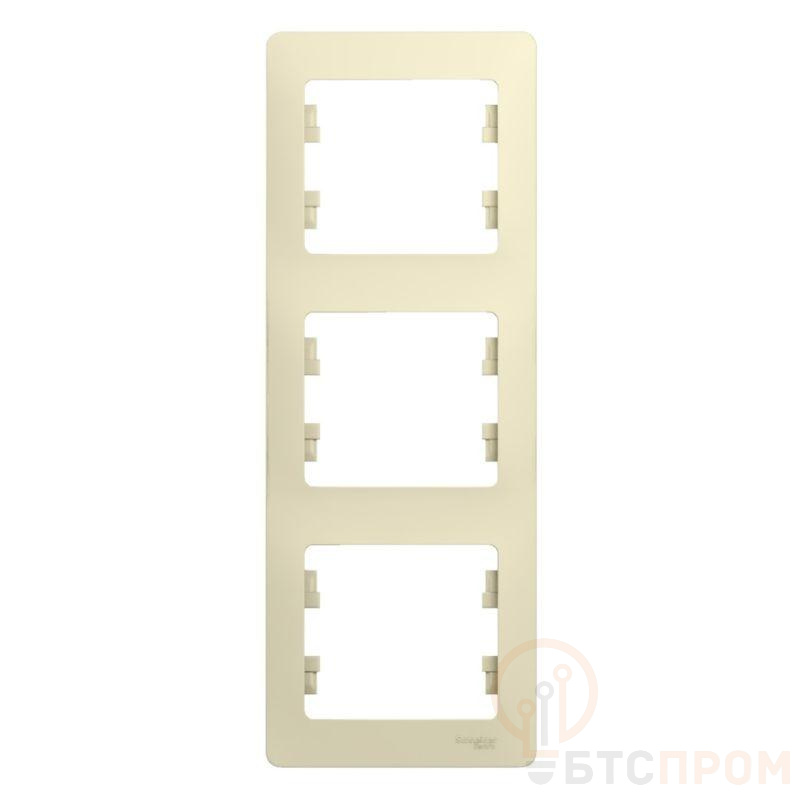 Рамка Systeme Electric (ранее Schneider Electric) серии Glossa (цвет бежевый) трёхместная. - Устанавливается в вертикальном положении. - Выполнена из материала PС+ASA, стойкого к УФ-излучению и появлению царапин. - Позволяет гармонично вписать электроустановочное изделие в интерьер помещения.