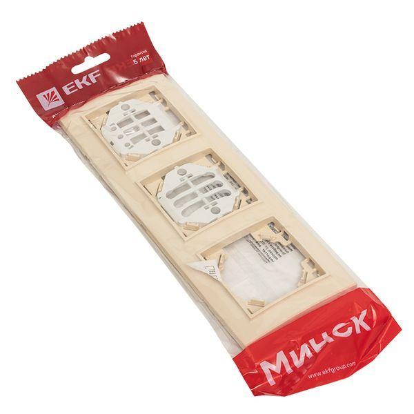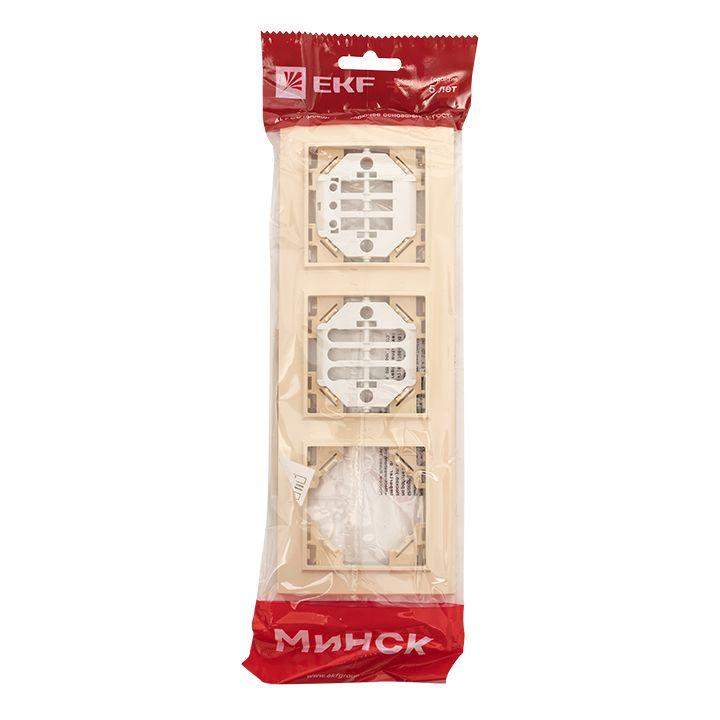 Рамка горизонтальная на 3 поста EKF серии Минск станет отличным решением, чтобы вписать электроустановочное изделие в ваш интерьер. Позволяет разместить в одном месте 3 функции.