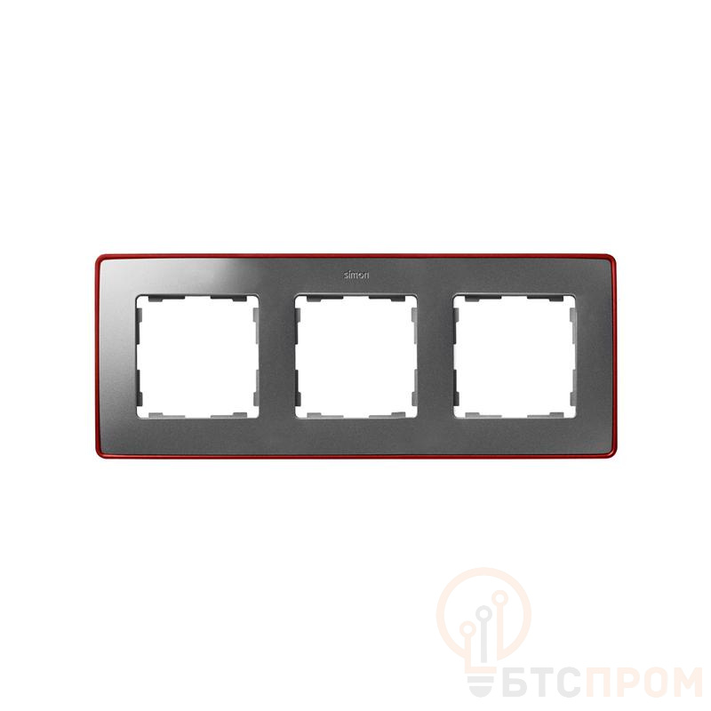Рамка 3-м Simon82 Detail холодный алюм.; основание красн. Simon 8201630-255