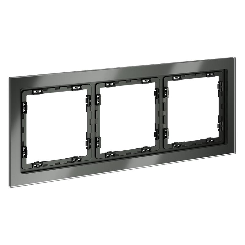 Конструкция рамки предназначена для монтажа в стандартные установочные коробки с межосевым расстоянием 71 мм. Она идеально подходит для сборки блока из трех электрических розеток или комбинации розеток и выключателей в спальнях, гостиных, офисах и общественных зданиях. Качественный пластик основания и точная подгонка всех элементов обеспечивают легкую установку и долговечную эксплуатацию. Стеклянная поверхность не только эстетична, но и проста в уходе.