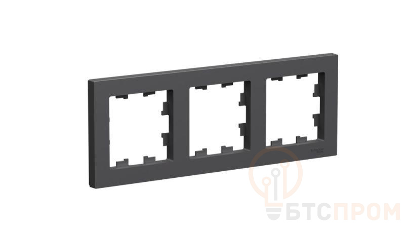 Рамка Systeme Electric (ранее Schneider Electric) серии AtlasDesign в цвете БАЗАЛЬТ трёхместная. - Устанавливается в вертикальном и горизонтальном положениях. - Лицевые детали из качественного ABS-пластика, устойчивого к царапинам и УФ-излучению. - Позволяет гармонично вписать электроустановочное изделие в интерьер помещения.