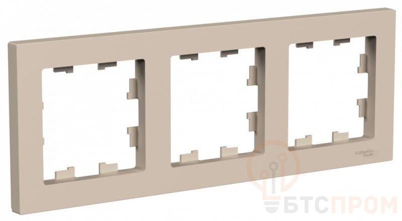 Рамка Systeme Electric (ранее Schneider Electric) серии AtlasDesign в цвете ПЕСОЧНЫЙ трёхместная. - Устанавливается в вертикальном и горизонтальном положениях. - Лицевые детали из качественного ABS-пластика, устойчивого к царапинам и УФ-излучению. - Позволяет гармонично вписать электроустановочное изделие в интерьер помещения.