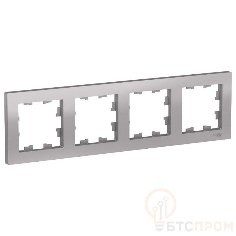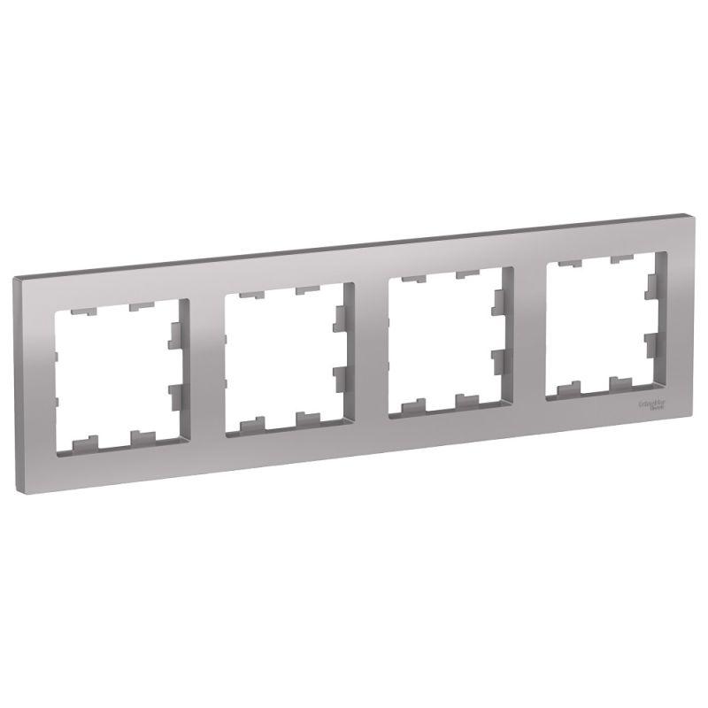 Рамка Systeme Electric (ранее Schneider Electric) серии AtlasDesign в цвете алюминий четырёхместная. - Устанавливается в вертикальном и горизонтальном положениях. - Лицевые детали из качественного ABS-пластика, устойчивого к царапинам и УФ-излучению. - Позволяет гармонично вписать электроустановочное изделие в интерьер помещения.