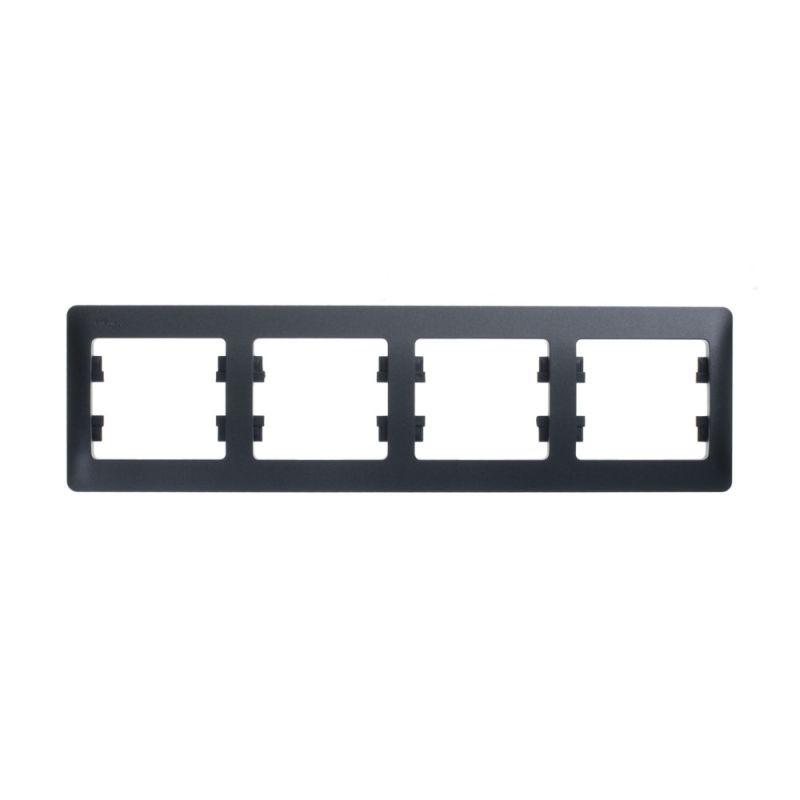 Рамка Systeme Electric (ранее Schneider Electric) серии Glossa (цвет антрацит) четырёхместная. - Устанавливается в горизонтальном положении. - Выполнена из материала PС+ASA, стойкого к УФ-излучению и появлению царапин. - Позволяет гармонично вписать электроустановочное изделие в интерьер помещения.