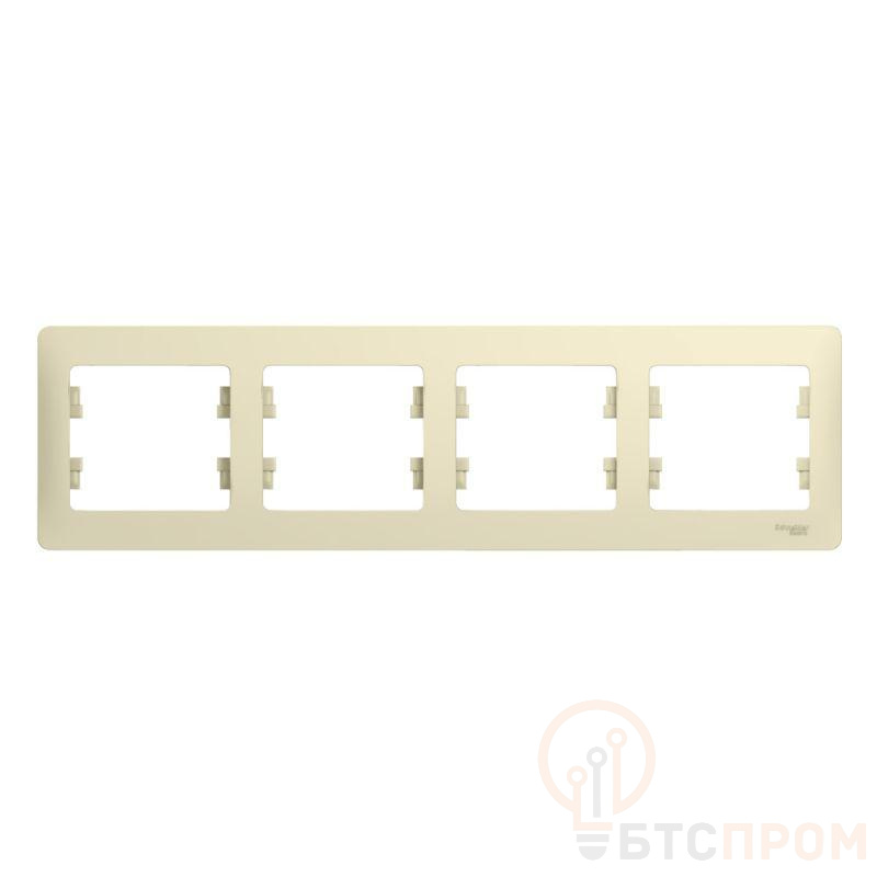 Рамка Systeme Electric (ранее Schneider Electric) серии Glossa (цвет бежевый) четырёхместная. Устанавливается в горизонтальном положении. Выполнена из материала PС+ASA, стойкого к УФ-излучению и появлению царапин. Позволяет гармонично вписать электроустановочное изделие в интерьер помещения.