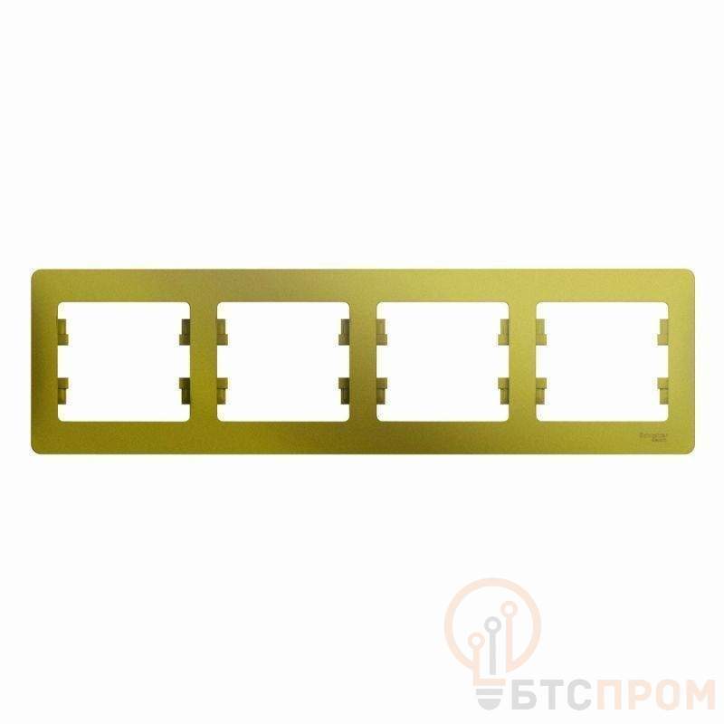 Рамка Glossa (цвет фисташковый) четырёхместная. - Устанавливается в горизонтальном положении. - Выполнена из материала PС+ASA, стойкого к УФ-излучению и появлению царапин. - Позволяет гармонично вписать электроустановочное изделие в интерьер помещения.