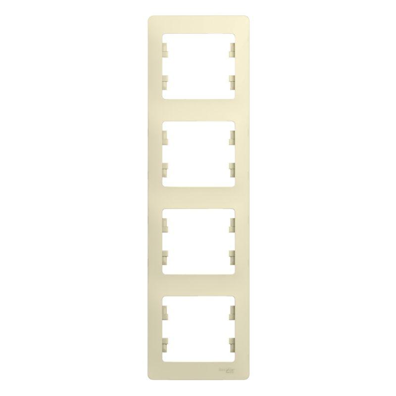 Рамка Systeme Electric (ранее Schneider Electric) серии Glossa (цвет бежевый) четырёхместная. - Устанавливается в вертикальном положении. - Выполнена из материала PС+ASA, стойкого к УФ-излучению и появлению царапин. - Позволяет гармонично вписать электроустановочное изделие в интерьер помещения.