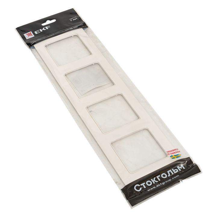 Рамка четырехпостовая EKF серии Стокгольм станет отличным решением, чтобы вписать электроустановочное изделие в ваш интерьер. Выполнена из поликарбоната, устойчивого к ультрафиолетовому излучению.