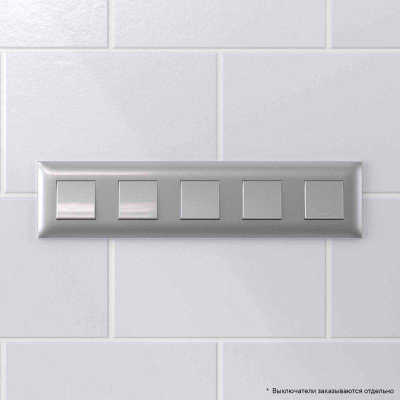 Рамки ДКС, разработанные студией Артемия Лебедева, предназначены для декоративного оформления электроутановочных изделий. Рамка имеет цвет "Закаленная сталь" - строгий, лаконичный и стильный оттенок с изысканным приглушенным блеском. Рамка сочетается с оттенками холодной цветовой гаммы и хорошо вписывается в интерьеры, выдержанными в стилистике "high-tech". В рамке предусмотрено 5 постов под ЭУИ (максимум 10 модулей). При этом рамка может быть размещена как горизонтально, так и вертикально. Габаритные размеры: 375х90 мм. Материал – термопласт.