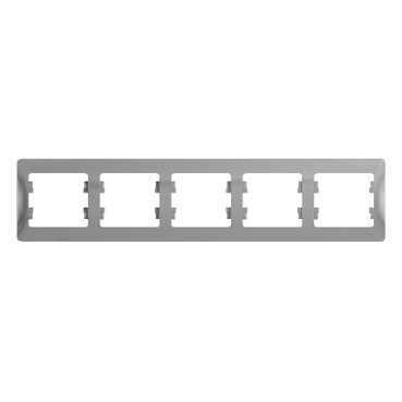 Рамка Systeme Electric (ранее Schneider Electric) серии Glossa (цвет алюминий) пятиместная. - Устанавливается в вертикальном положении. - Выполнена из материала PС+ASA, стойкого к УФ-излучению и появлению царапин. - Позволяет гармонично вписать электроустановочное изделие в интерьер помещения.