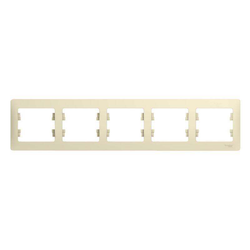 Рамка Systeme Electric (ранее Schneider Electric) серии Glossa (цвет бежевый) пятиместная. - Устанавливается в вертикальном положении. - Выполнена из материала PС+ASA, стойкого к УФ-излучению и появлению царапин. - Позволяет гармонично вписать электроустановочное изделие в интерьер помещения.