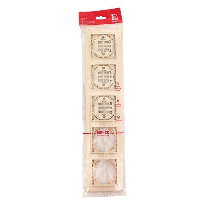 Рамка горизонтальная на 5 поста EKF серии Минск станет отличным решением, чтобы вписать электроустановочное изделие в ваш интерьер. Позволяет разместить в одном месте 5 функции.
