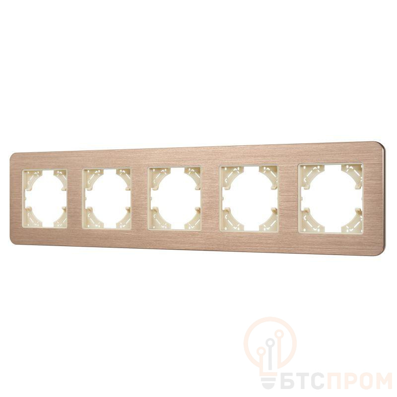 Рамка алюминиевая на 5 постов, под встраиваемый механизм. Цвет - золотой. Среднего уровня герметичности IP20. Ориентация монтажа - горизонтальная (основным ориентиром служат посадочные выступы для накладки механизма). Габаритные размеры: длина 370 мм, ширина 86 мм, высота 7 мм. Гарантийный срок 12 мес.