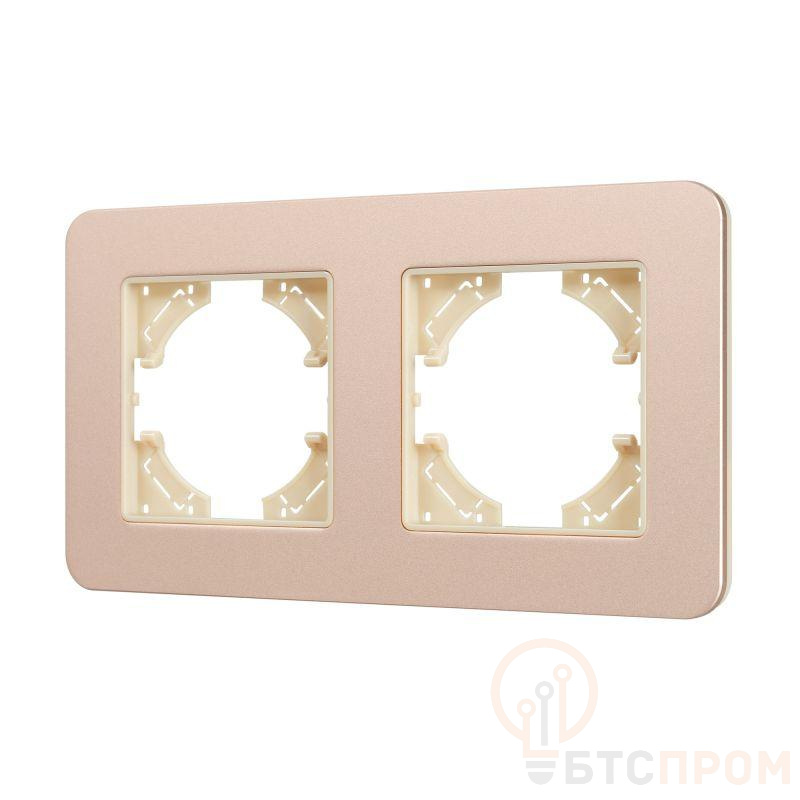 Рамка алюминиевая на 2 поста, под встраиваемый механизм. Цвет - золотой с Soft-Touch покрытием. Среднего уровня герметичности IP20. Ориентация монтажа - горизонтальная (основным ориентиром служат посадочные выступы для накладки механизма). Габаритные размеры: длина 157 мм, ширина 86 мм, высота 7 мм. Гарантийный срок 12 мес.