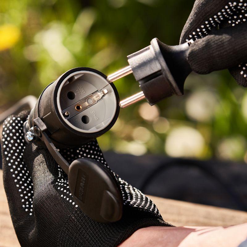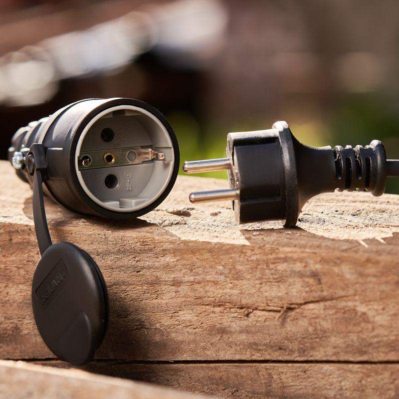 Электрическая влагозащищенная переносная розетка предназначена для подключения бытовых и профессиональных приборов к электросети. Разработана для использования в сложных эксплуатационных условиях с высокой влажностью. Широко применяется в быту, на производстве и в строительстве. Степень защиты IP44 позволяет использовать розетку для организации электропитания под открытым небом, а в дождь – под навесом. Не допускается погружение в воду. Розетка оснащена защитной крышкой. Для обеспечения безопасности детали, соприкасающиеся с токоведущими частями выполнены из огнеупорного материала, устойчивого к температуре до +850 ?С. Ударопрочный разборный корпус выполнен из каучука: устойчив к ударам, вибрациям и другим механическим воздействиям. Заземление: есть. Сечение проводников: 0,75-2,5 мм2. Контактная группа: MS-58 (латунь). Тип полюсов: 2Р+РЕ.