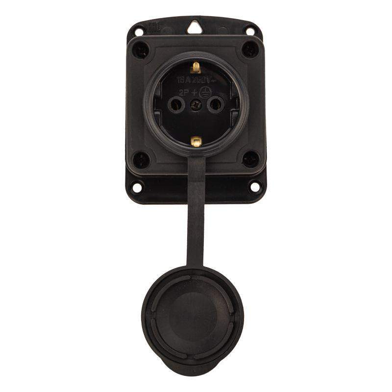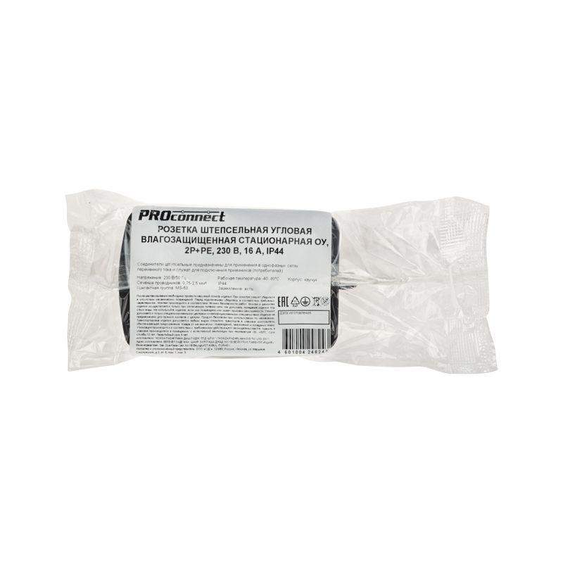 Розетка штепсельная влагозащ. стационарная угловая ОУ 16А IP44 230В 2P+PE каучук PROCONNECT 111-127-4