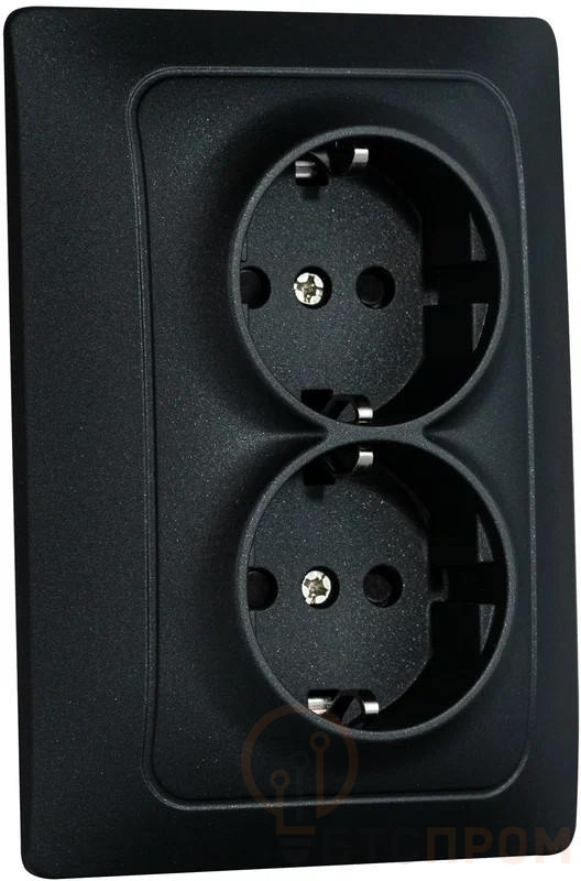 –Механизм розетки 2-местн. с/з с з/ш СП Bravo 16А IP20 250В графит GUSI С10Р6-010