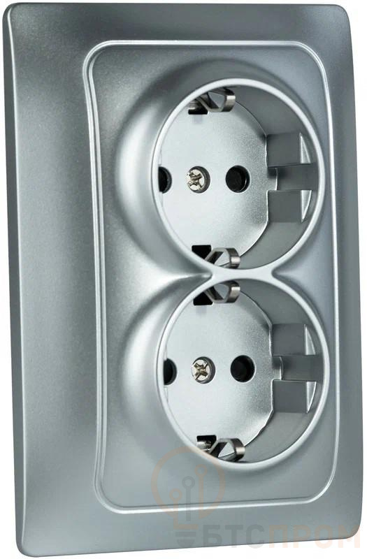 Механизм розетки 2-местн. с/з с з/ш СП Bravo 16А IP20 250В серебр. GUSI С10Р6-004 фото в каталоге от BTSprom.by