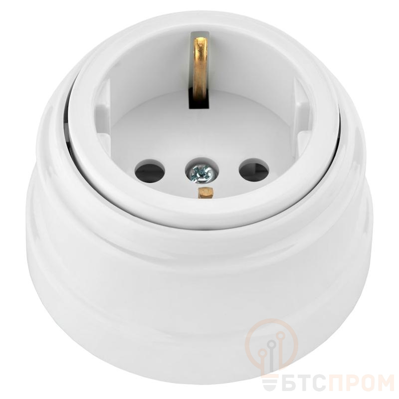Розетка 1-м ОП РЕТРО 16А с заземл. бел. Bylectrica РА16-0202 фото в каталоге от BTSprom.by
