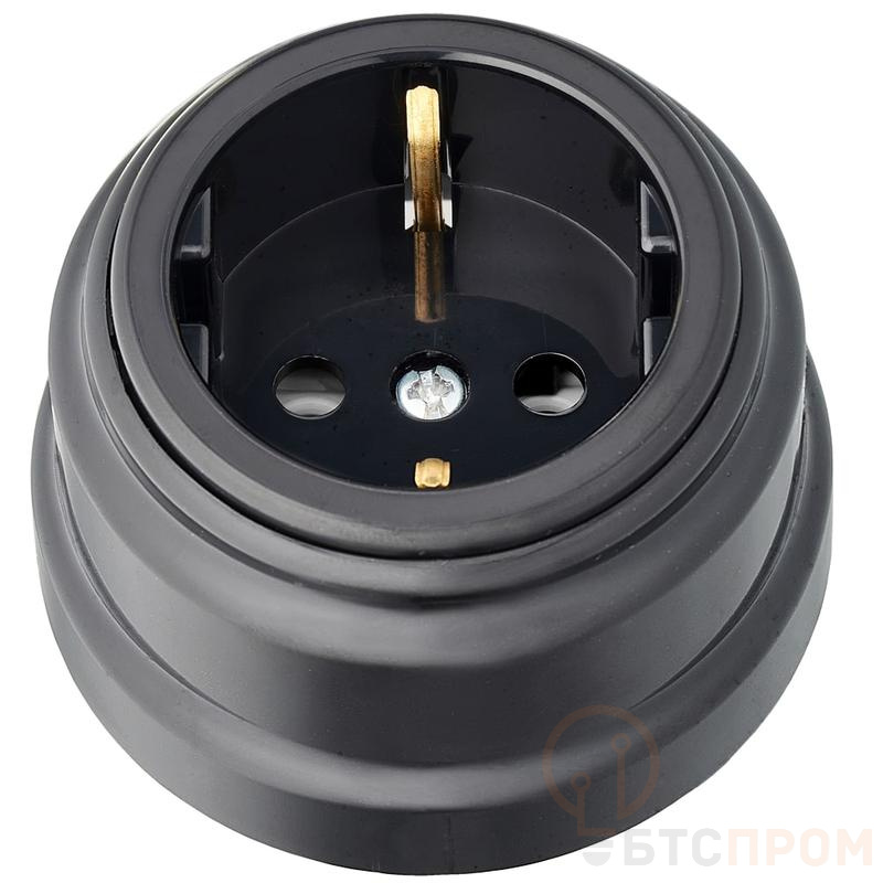Розетка 1-м ОП РЕТРО 16А с заземл. Bylectrica РА16-0202 черный фото в каталоге от BTSprom.by