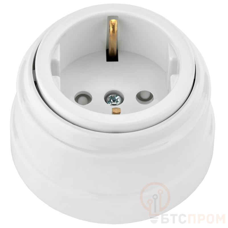 Розетка 1-м ОП РЕТРО 16А с заземл. со шторками бел. Bylectrica РА16-0206 фото в каталоге от BTSprom.by
