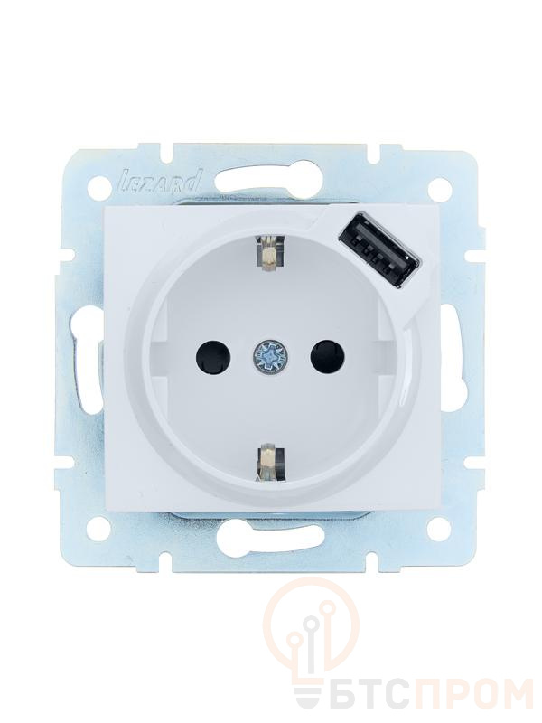 Розетка 1-м СП ASTI 16А IP20 с заземл. с заряд. устройством USB механизм бел. LEZARD 7081-0288-181 фото в каталоге от BTSprom.by