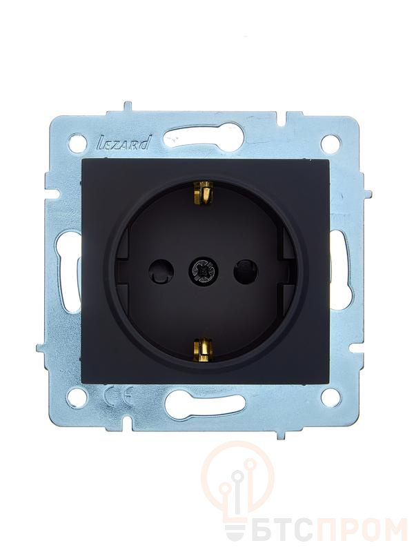 Розетка 1-м СП ASTI 16А IP20 с заземл. защ. шторки термопласт механизм черн. бархат. LEZARD 7081-4288-124B